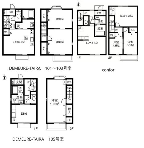 間取りは1DK×1室、2LDK×3室、3LDK×2室、駐車場8台ございます。