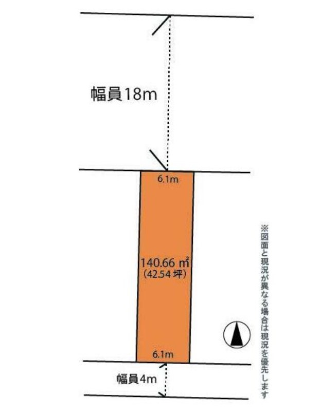 | 接道状況 | 二方 (北側 公道18.0m 間口6.1m) (南側 公道4.0m 間口6.1m) | ||