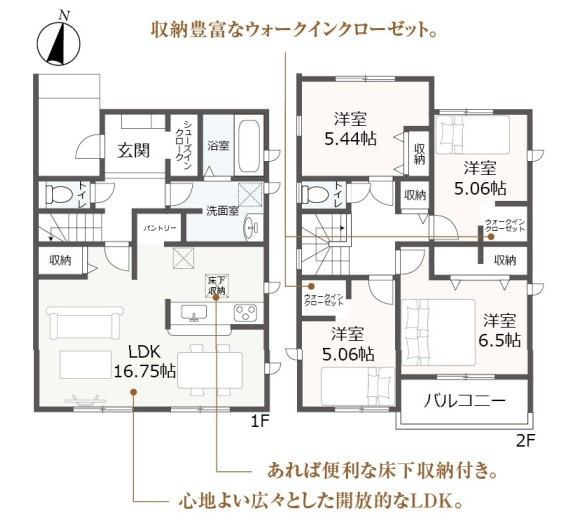 LDK 16.7帖 1室 / 洋室 6.5帖 1室 / 洋室 5.4帖 1室 / 洋室 5.0帖 2室 / |