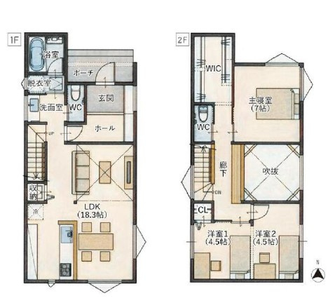 【間取り】吹き抜けの有るデザイン性の高い戸建 安心のオール電化です