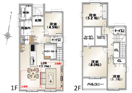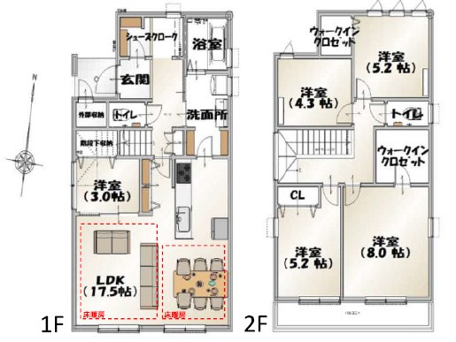 LDK 17.7帖 1室 洋室 4.5帖 1室 洋室 8.0帖 1室 洋室 5.2帖 2室 |
