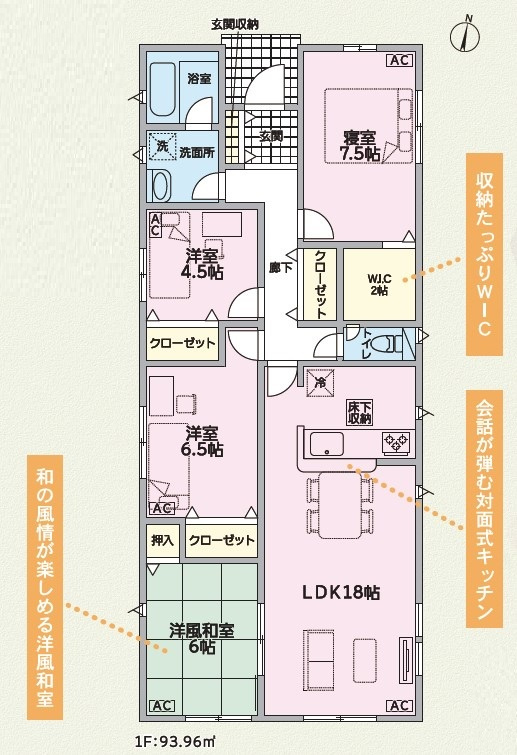 LDK 18.0帖 1室 和室 6.0帖 1室 洋室 6.5帖 1室 洋室 7.5帖 1室 洋室 4.5帖 1室 |