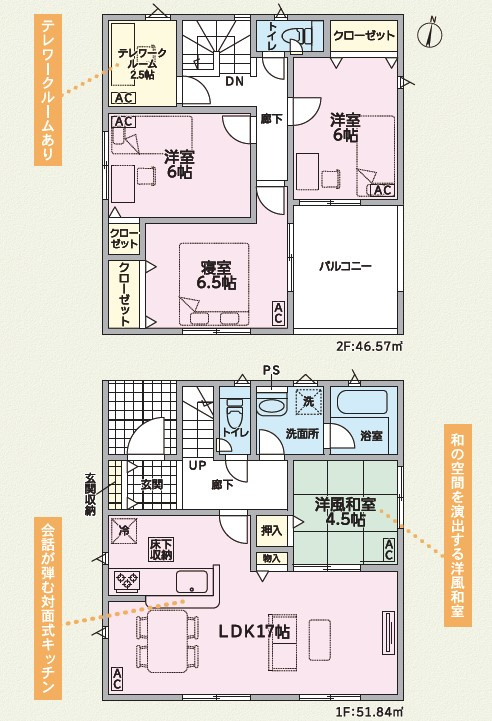 LDK 17.0帖 1室 和室 4.5帖 1室 洋室 6.5帖 1室 洋室 6.0帖 2室 |