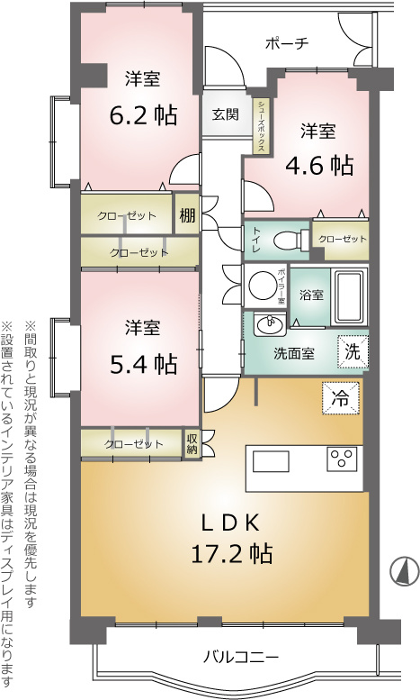 LDK 17.2帖 1室 / 洋室 6.2帖 1室 / 洋室 5.4帖 1室 / 洋室 4.6帖 1室 / |