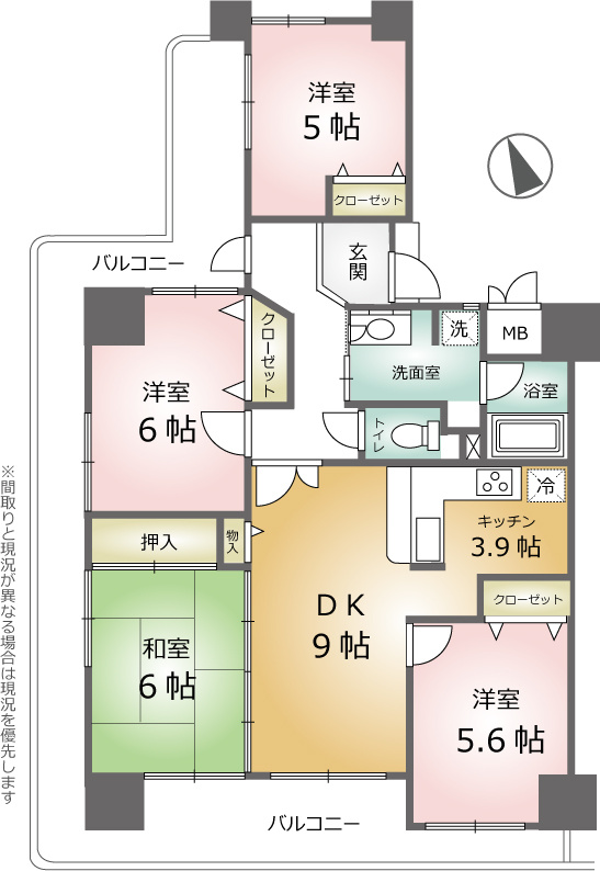 DK 9.0帖 1室 / K 3.9帖 1室 / 和室 6.0帖 1室 / 洋室 6.0帖 1室 / 洋室 5.6帖 1室 / 洋室 5.0帖 1室 / |