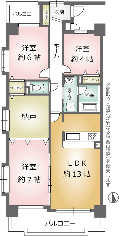 LDK 13.0帖 1室 / 洋室 7.0帖 1室 / 洋室 6.0帖 1室 / 洋室 4.0帖 1室 / |