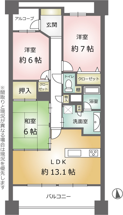 LDK 13.1帖 1室 / 洋室 7.0帖 1室 / 洋室 6.0帖 1室 / 和室 6.0帖 1室 / |