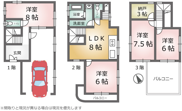 RC造3階建て プライバシーが守られる2階リビング コンビニ・スーパー等徒歩圏内☆