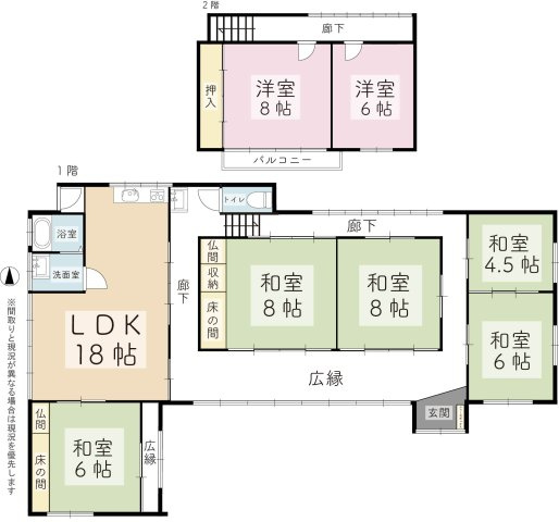 和室 8.0帖 2室 / 和室 6.0帖 2室 / 和室 4.5帖 1室 / 洋室 8.0帖 1室 / 洋室 6.0帖 1室 / LDK 18.0帖 1室 / |