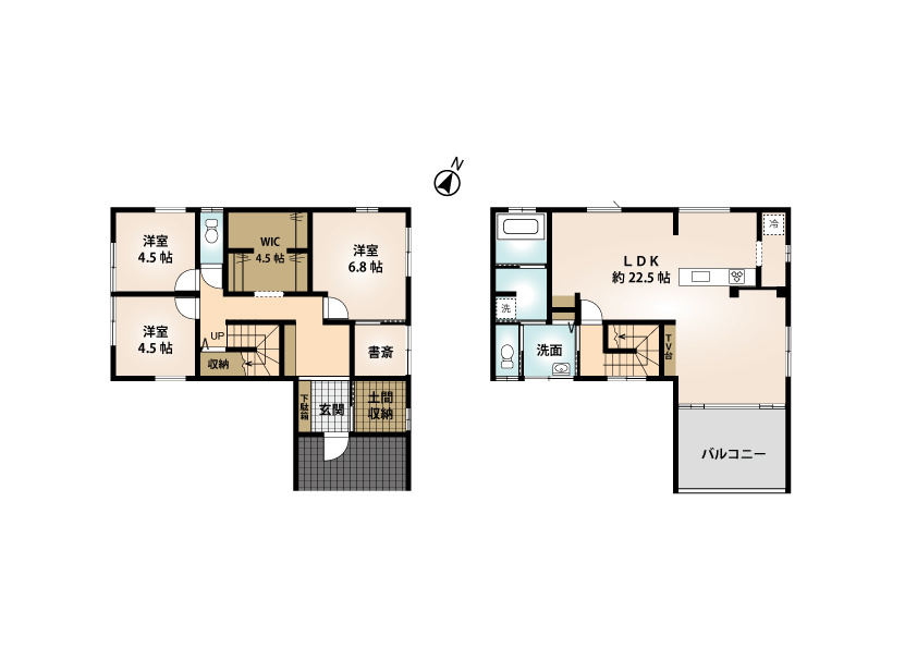 洋室 4.5帖 2室 / S(納戸) 6.8帖 1室 / LDK 22.5帖 1室 / |