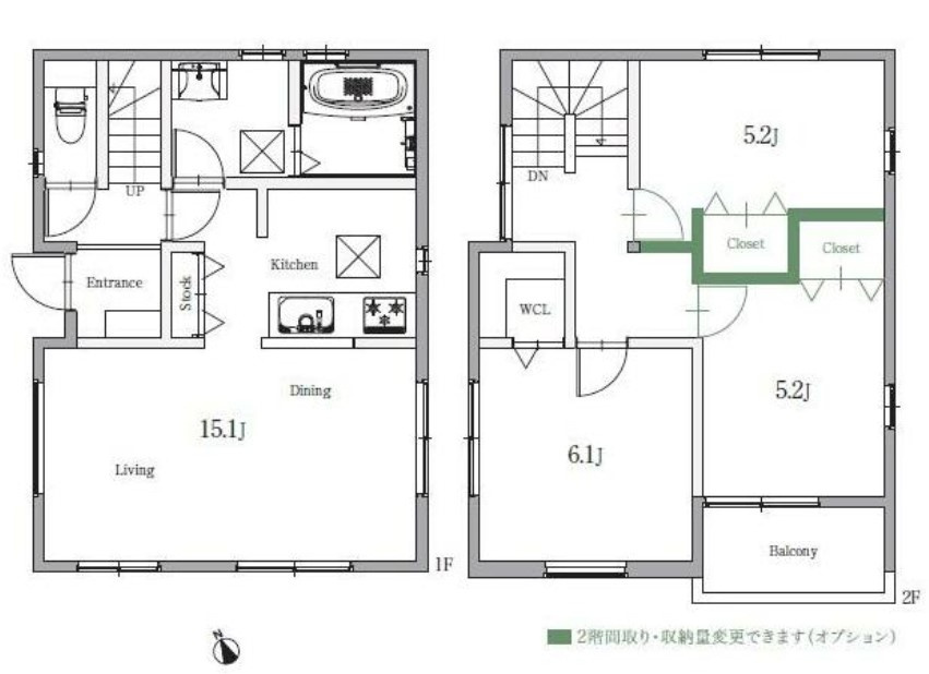 LDK 15.1帖 1室 / 洋室 6.1帖 1室 / 洋室 5.2帖 2室 / |