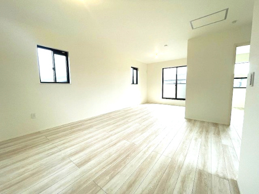 【居間・リビング】開放感あふれる南向きリビング。大きな窓で光をたっぷり取り込み、家族団らんの中心となる空間です◎