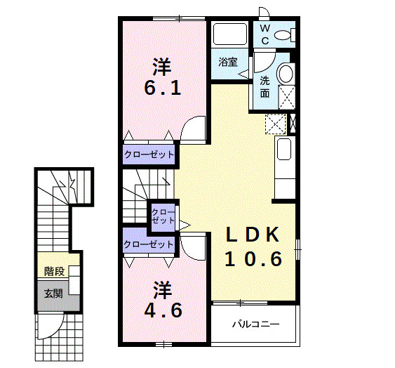 洋室 6.1帖 / 洋室 4.6帖 / LDK 10.6帖 / |